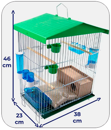 Itens Inclusos: Gaiola, Ninho, Poleiros, Comedouros, Bebedouros, Banheira, Porta Vitaminas e Alimento para Passaros