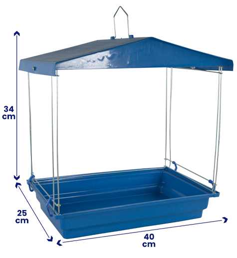 Com as laterais aberta, teto plástico e bandeja, adicione os alimentos e rações em áreas livres, varandas, sacadas de apartamentos, jardins, chácaras, sítios, fazendas, parques, bosques entre outros lugares para que pássaros silvestres livres possam se alimentar e criar um habito de visitar o mesmo local sempre. Fácil instalação e montagem e gancho.