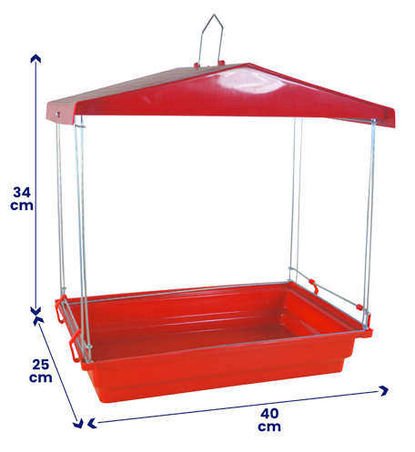 Com as laterais aberta, teto plástico e bandeja, adicione os alimentos e rações em áreas livres, varandas, sacadas de apartamentos, jardins, chácaras, sítios, fazendas, parques, bosques entre outros lugares para que pássaros silvestres livres possam se alimentar e criar um habito de visitar o mesmo local sempre. Fácil instalação e montagem e gancho.
