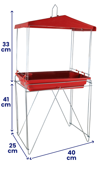 Com as laterais aberta, teto plástico e bandeja, adicione os alimentos e rações em áreas livres, varandas, sacadas de apartamentos, jardins, chácaras, sítios, fazendas, parques, bosques entre outros lugares para que pássaros silvestres livres possam se alimentar e criar um habito de visitar o mesmo local sempre. Fácil instalação e montagem, com suporte e gancho.